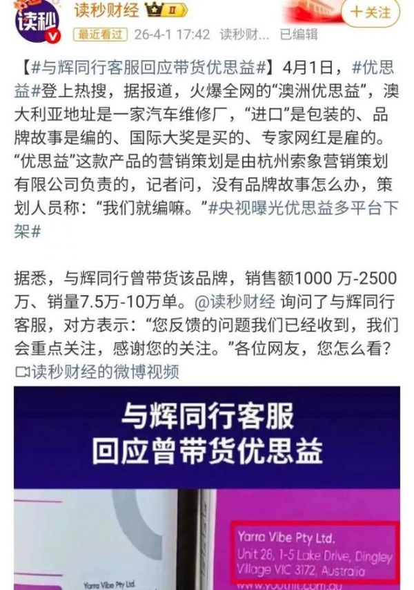 就在这句话被翻热的同时,他的与辉同行直播间,正被澳洲优思益的造假风波缠得脱不开身。