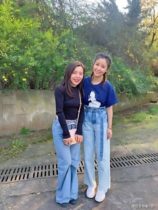 蓝色短袖在人群中很吸睛,圆领的设计简约又大方,衣身正面印着一个白色的卡通图案,给基础款T恤添了不少活泼感,避免了枯燥乏味。T恤衣摆塞进了裤腰,所以衣长是多少没有办法确定。头发编成了两条俏皮的麻花辫,发尾松松垮垮垂在肩头,额前留了点碎发修饰脸型,整个人看着减龄又元气,完全看不出年龄感。