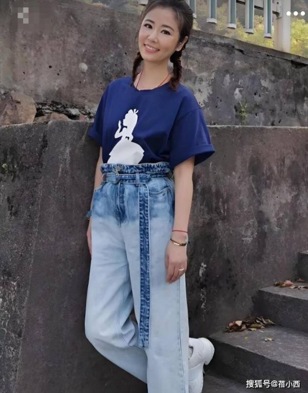 林心如新烫了羊毛卷年轻25岁,穿衬衫+小白裤,美得像换了个人