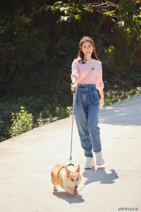 淡粉色圆领卫衣的左胸口有个小小的红色刺绣标,极具细节感。下身搭了一件花苞腰牛仔裤,腰头做了宽边松紧设计。裤型是宽松的萝卜裤版型,裤脚微微收窄,休闲又藏肉。
