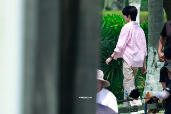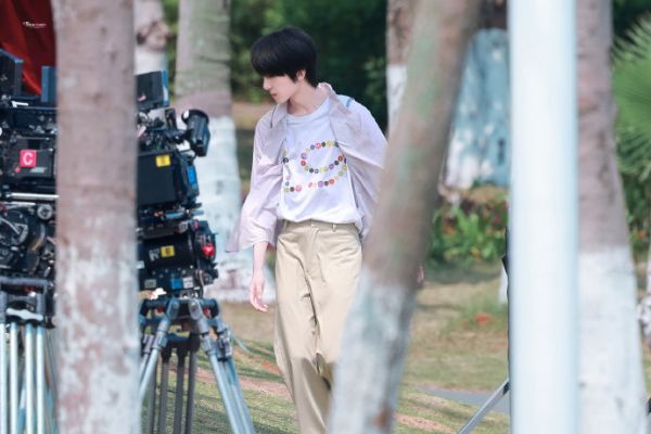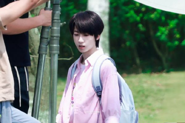 杨博文粉衬衫背书包亮相《我们少年时代2》路透