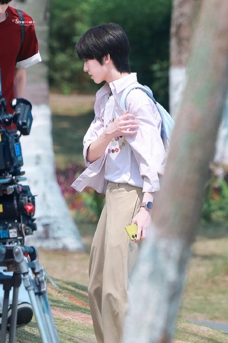 #杨博文小学生春游即视感# 杨博文《我们少年时代2》路透粉衬衫+双肩包软乎乎的元气少年,从校园里跑出来的小太阳好治愈#杨博文粉衬衫背书包#