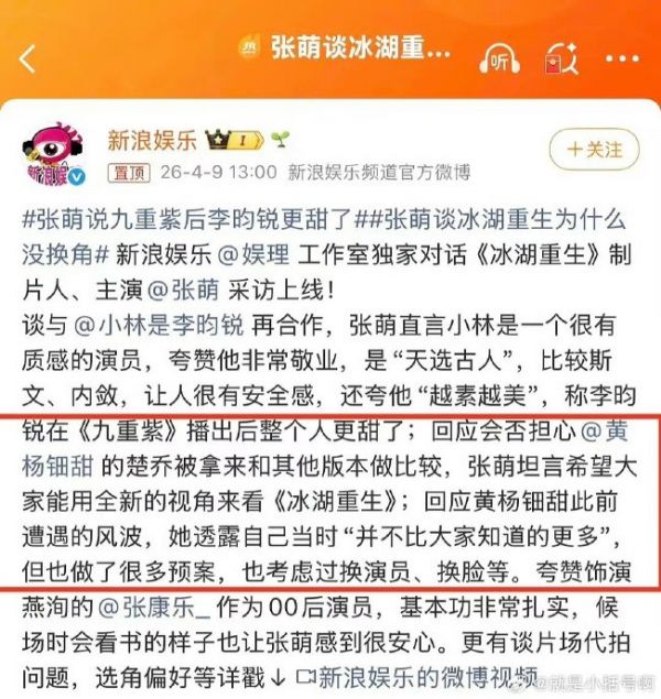 看得出来张萌还是很欣赏黄杨钿甜的,确实看过五福我觉得这个女生演戏很有灵气!#张萌曾考虑换脸黄杨钿甜#