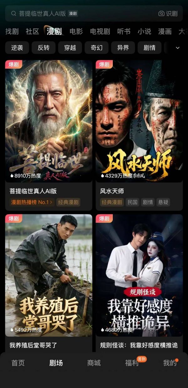 AI仿真人剧《菩提临世真人AI版》自3月31日上线后热度持续走高。上线首日红果追剧人数达到181万,热度值冲至8923万,迅速登上平台热播榜第一,这也是AI漫剧第一次登上红果热度TOP1。