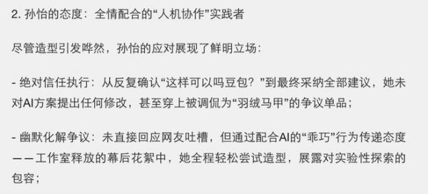 可遗憾在于,当AI技术越来越先进的时刻,人类情感里最区别于机器的真实,反而成了最先被修剪掉的旁枝。孙怡或者说内娱如今越来越多的不犯错偶像们所展示出的这种稳,本质上都是生发于对自我的消解。她、他们把那个真实的,可能破碎、可能歇斯底里,可能不够完美的孙怡们,藏在了一套完美的建模外壳之下。