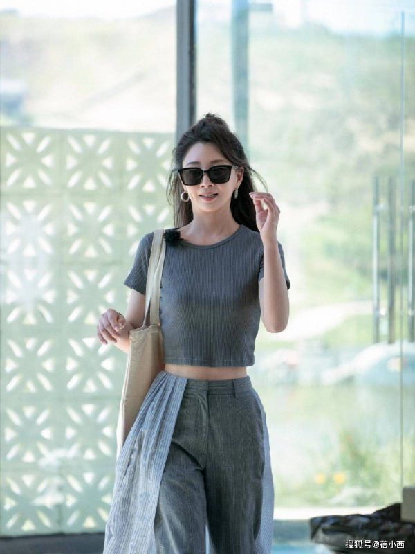 短款修身的灰色T恤,长度刚好露出腰线,既优化了身材比例,打造出“三七分”的黄金身材,又不会过于暴露,恰到好处地展现了纤细的腰腹,尽显好身材。搭配高腰阔腿裤,能完美修饰腿型,不管是O型腿、X型腿,还是腿粗、胯宽,都能一键藏住,同时拉高腰线,拉长腿部线条,显高又显瘦。
