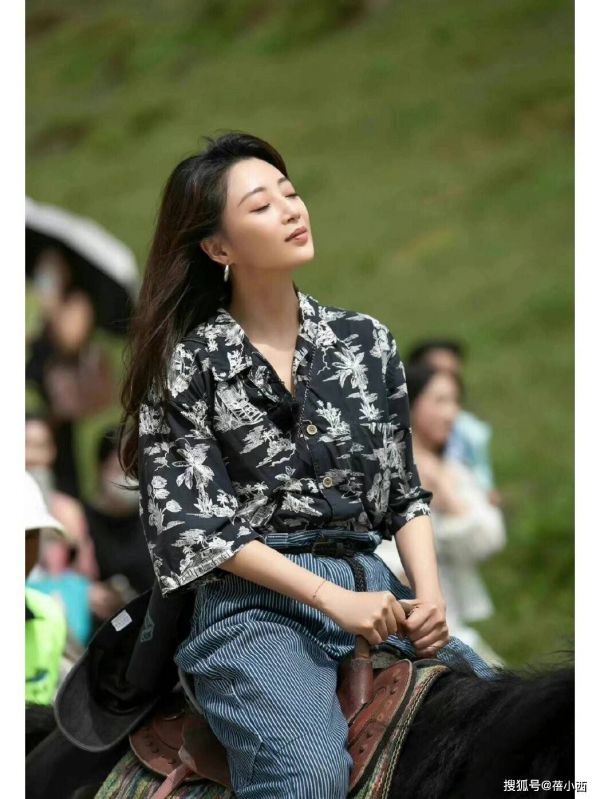 这件印花衬衫搭配阔腿裤的造型也很松弛,殷桃选择的黑底底色搭配白色植物纹样,摒弃了大红大绿的花哨印花,走的是低调复古的路线,保留了春日的灵动气息,又不会显得甜腻浮夸,适配40+女性的气质。版型上采用宽松落肩设计,微微松弛的剪裁弱化了肩部线条,对肩宽、溜肩的中年女性格外友好,不会像修身衬衫那样暴露身材短板。