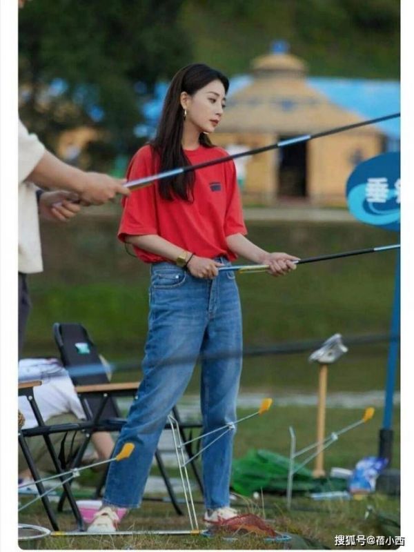 下装搭配了蓝色高腰直筒牛仔裤,这是非常经典百搭的单品,高腰设计精准拉高腰线,与红色T恤形成上短下长的衔接,视觉上拉长腿部线条,让双腿更显修长。而且直筒裤型比阔腿裤更利落,裤腿贴合腿部线条却不紧绷,能修饰腿型,藏住大腿赘肉,同时露出纤细的脚踝,让整体造型更清爽显高。