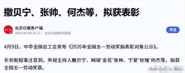 刚踏入四月,撒贝宁就收到了振奋人心的消息:全国五一劳动奖拟表彰名单公示,他的名字赫然在列。这份国家级认可,不仅瞬间引爆了全网,也象征着他27年来坚持不懈的努力,终于得到了最权威的肯定。在很多人的固有印象里,五一劳动奖多授予一线工人或科研人员,而撒贝宁作为主持人获此殊荣,无疑是对传媒行业脑力劳动的肯定,也是对他27年如一日敬业态度的最高奖赏。