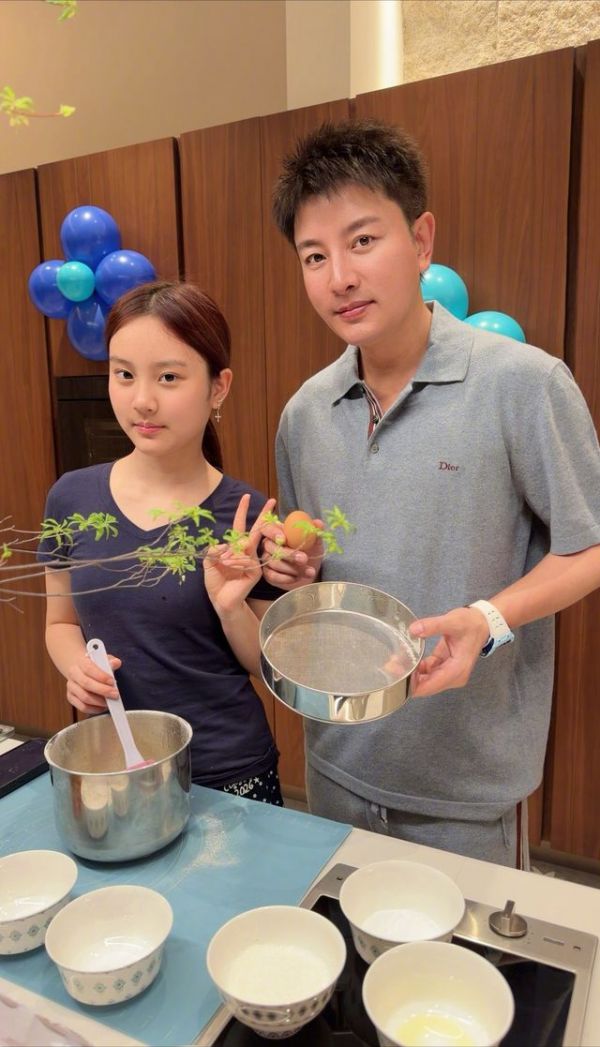 照片里,13岁的甜馨顶着一头红发,耳垂上戴着精致耳钉,靠在爸爸肩膀上比耶,贾乃亮搂着女儿笑得见牙不见眼,桌上摆着甜馨亲手做的雪山蛋糕——这画面,看得网友直呼“破防了”。