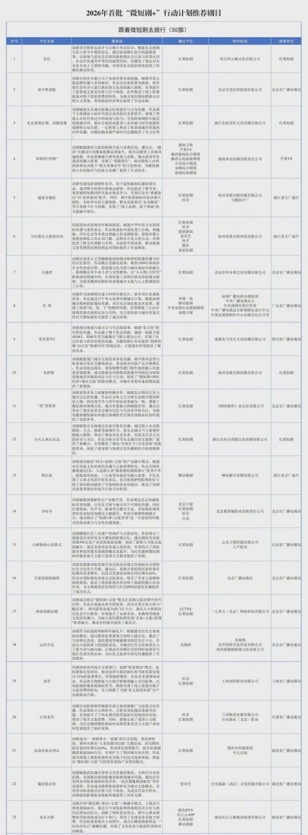 广电总局发布2026年首批“微短剧+”行动计划推荐剧目,共有116部优秀微短剧成功入选。