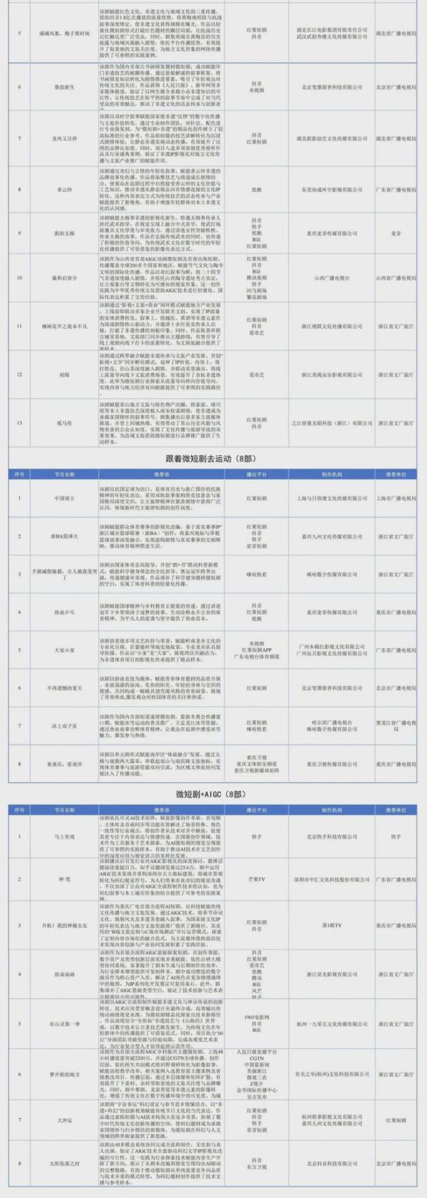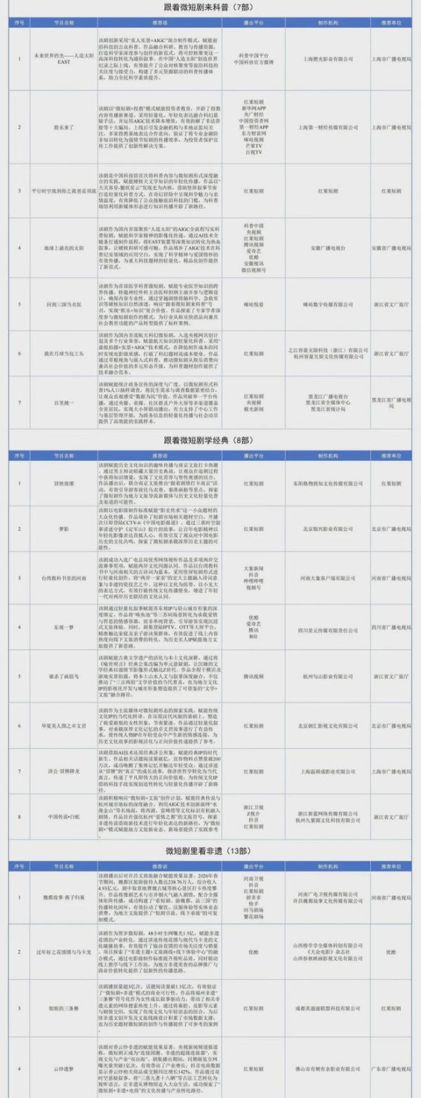 本次推荐片单紧扣大会“繁荣新大众文艺,共创新时代视听”的核心主题,设置七个特色单元,分别为跟着微短剧去旅行(50部)、跟着微短剧来学法(22部)、跟着微短剧来科普(7部)、跟着微短剧学经典(8部)、微短剧里看非遗(13部)、跟着微短剧去运动(8部)、微短剧+AIGC(8部),集中展现了2025年以来“微短剧+”行动计划推进过程中取得的丰硕成果。