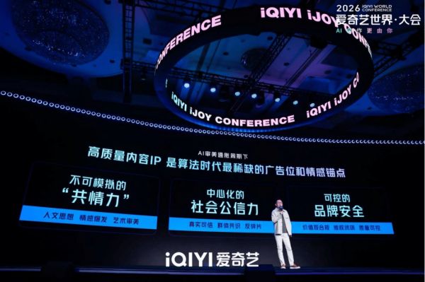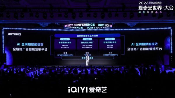 4月20日下午,以“链接人心,智创未来”为主题的2026爱奇艺iJOY春季悦享会在北京举办。作为爱奇艺世界·大会的营销专场,本次悦享会不仅重磅发布了爱奇艺2026-2027年度超350部“长中短”新作片单,更集中展示了平台在AI时代的营销升级布局。会上,爱奇艺高级副总裁陈潇向与会嘉宾分享了AI推动影视媒体平台去中心化转型趋势下,爱奇艺将顺应技术浪潮,聚焦精品化内容创作,守住好内容的底线。爱奇艺高级副总裁吴刚则分享了爱奇艺如何以领先的用户规模、优质的内容供给与深度融合的AI技术,打造全链路广告智能营销平台,成为品牌最具整合能力的智能合作伙伴。