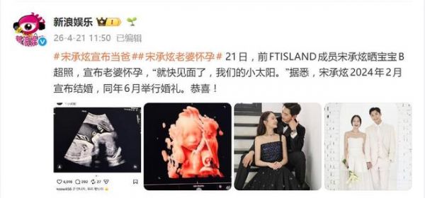 据4月21日报道,前FTISLAND吉他手宋承炫在社交平台甩出一张宝宝B超照,正式官宣妻子怀孕。他配文写道:“就快见面了,我们的小太阳。”照片里,黑白B超和清晰的3D彩超并列,胎儿轮廓已然可见,字里行间全是掩不住的期待和幸福。