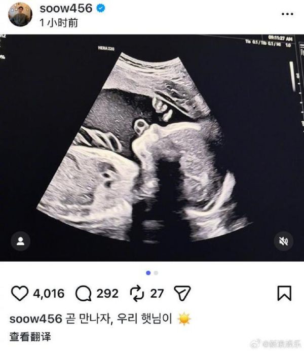 宋承炫晒宝宝B超照,宣布老婆怀孕:就快见面了,我们的小太阳