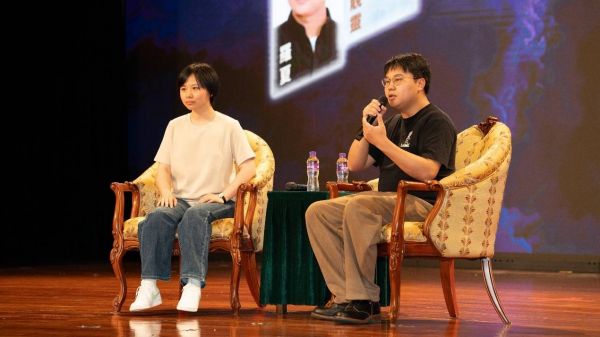 图为两位内地青年科幻作家与同学们互动交流。主办方供图