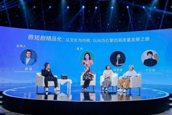 在行业对话环节,腾讯视频微短剧银河工作室负责人曹睿担任主持,与知名作家、编剧饶雪漫,东方微梦总经理、《搏忆》总制片人陈霁,新锐导演于亚辰,围绕“微短剧精品化:以文化为内核,以AI为引擎的高质量发展之路”展开深度探讨。