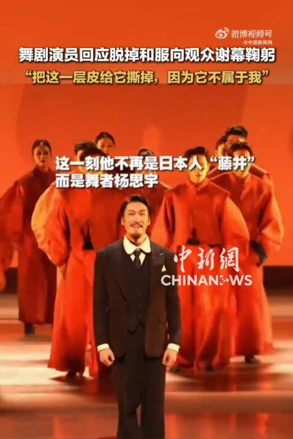 演员杨思宇回应脱掉和服才向观众鞠躬致谢:我要做回真正的中国人