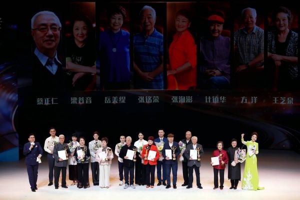 王芝泉、方洋、计镇华、张洵澎、张铭荣、岳美缇、梁谷音和蔡正仁一起上台时,现场观众全体起立,多媒体画面放映他们初入戏校的少年模样,70多年过去,仍然站在台上的这些人满头白发,因病故去的华文漪和刘异龙不能加入这群“老伙计”的行列,当主持人曹可凡提起故人的名字,台上台下众人忍不住拭泪。