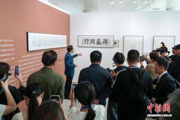图为两块砖公益基金管委会主任王振介绍中国当代作家冯骥才的手稿。中新社记者 李超庆 摄