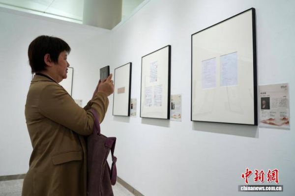 图为作家刘震云的手稿吸引读者驻足观赏。中新社发 赵梦阳 摄