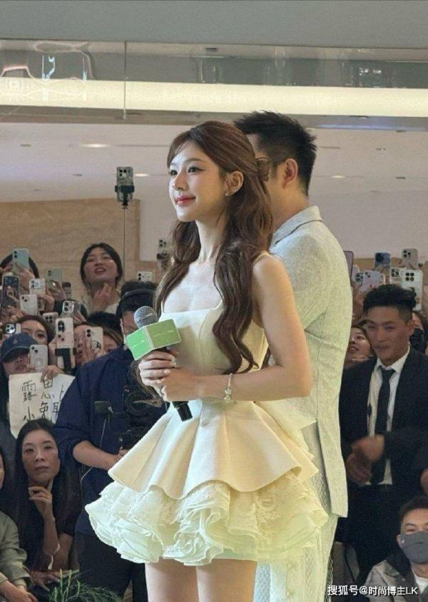只见她穿着一身白色吊带层叠蕾丝裙,长卷发扎成半扎发公主头,一出场那叫一个惊艳,以至于见到真人的粉丝们都开始尖叫,大赞她是“真人芭比”。