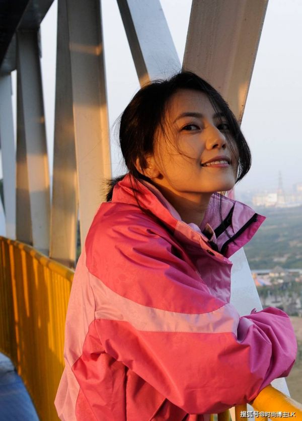 46岁高圆圆去登高,穿粉色冲锋衣好明媚啊,网友:一笑心都融化了