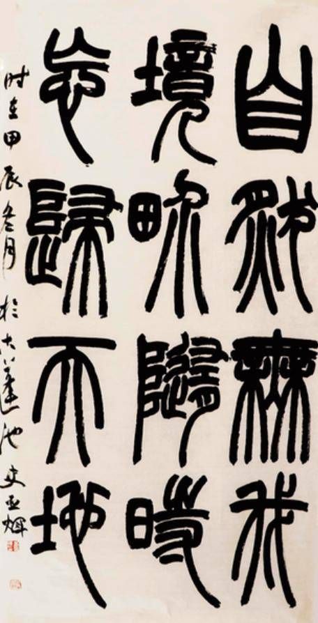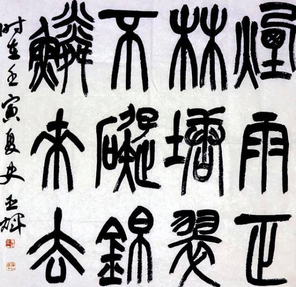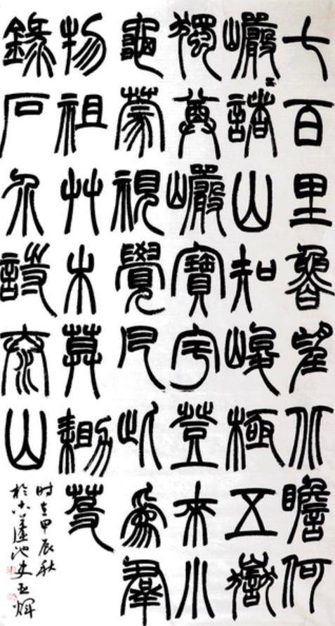 对亚辉老弟近年来作品进行分析可以发现,其楷书在《张猛龙碑》的骨力基础上,融入了《张黑女墓志》的灵动变化;其隶书在汉碑的厚重中,加入了简帛书的率性笔意;篆书以清人赵之谦、吴让之为法度,调动笔墨的丰富变化和自然挥洒的属性,强化赵之谦篆法以碑入篆的特点,彰显篆书中和之气的雄强之风;其行草作品则呈现出颜体气势与宋人意趣的有机结合,这种多元融合的创作方法,形成了既扎根传统又张扬个性的艺术语言。美国艺术批评家格林伯格认为,前卫艺术的本质在于对传统的批判性继承。亚辉老弟的创作实践虽然不以“前卫”自居,但其对传统经典的创造性转化,同样体现了一种批判性思维的运用。