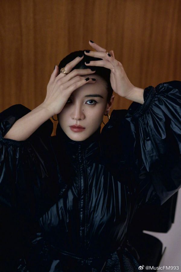 迪丽热巴黑裙造型冷艳神秘,红唇耳饰尽显魅力