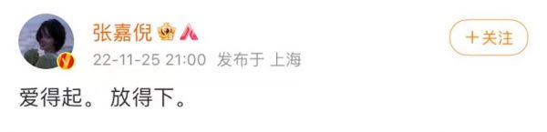 张嘉倪深夜发文,用“爱得起,放得下”这言简意赅的六个字,宣告与丈夫买超感情的结束。