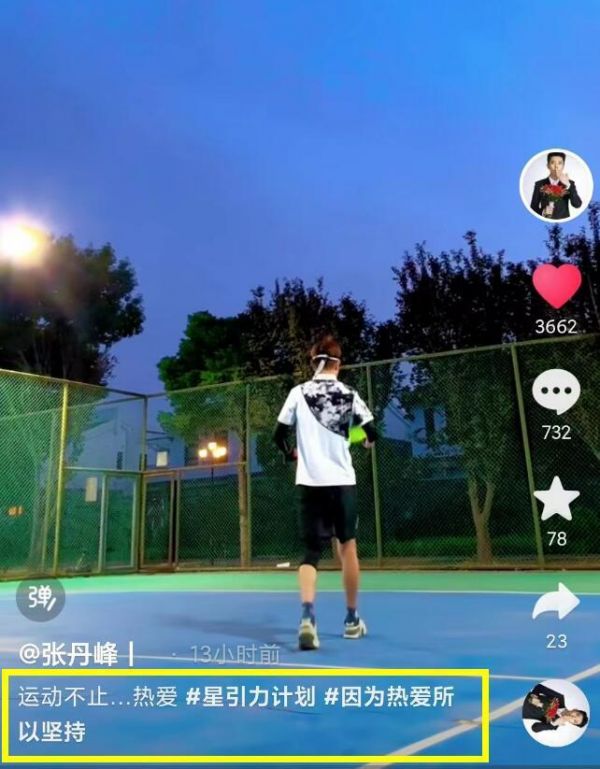 当天张丹峰穿着一身休闲运动装打网球,当时夜色已深,路灯也亮起来,画面只拍摄到张丹峰一人,他一句话都没有说,而是不断挥动着球拍,一副全力发泄自己的感觉。